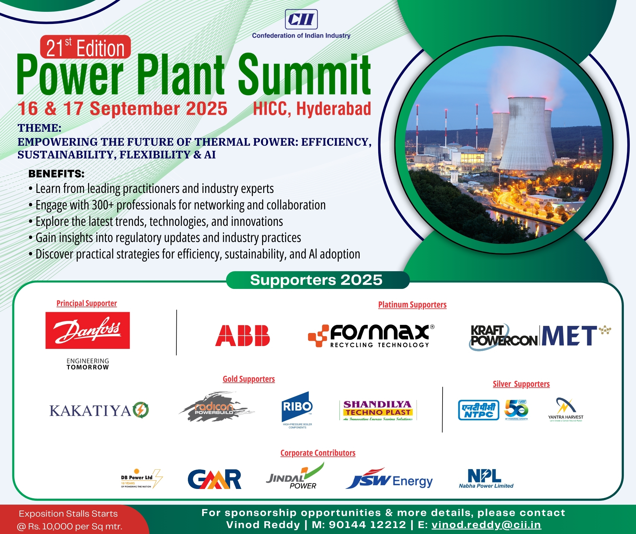 CII-Sohrabji Godrej Green Business Centre is promoting the concept of “Make Indian Thermal Power Plants World Class”. As a part of the above initiative, we are organizing the 21st edition of the “Power Plant Summit” on 16 & 17 September, 2025, HICC, Hyderabad.